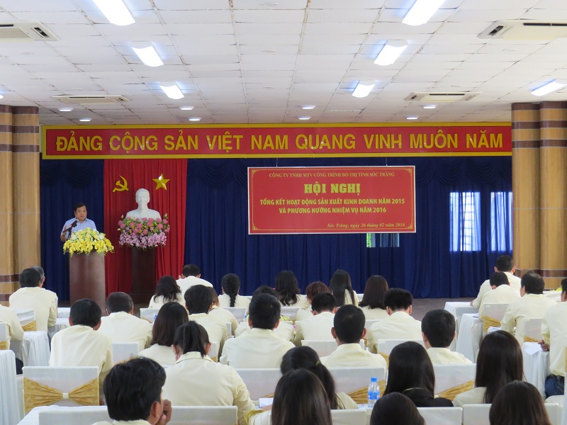 Để tổng kết công tác hoạt động sản xuất, kinh doanh năm 2015 và phương hướng nhiệm vụ năm 2016, sáng ngày 26 tháng 02 năm 2016, Cty TNHH MTV Công trình đô thị tỉnh Sóc Trăng đã tổ chức Hội nghị tổng kết năm. Tham dự hội nghị có ông Lâm Hữu Tùng – Chủ tịch kiêm Tổng Giám đốc Công ty, Ban Tổng Giám đốc, lãnh đạo các phòng Nghiệp vụ, Xí nghiệp, Đội, BQL các dự án và toàn thể CNVC-NLĐ.