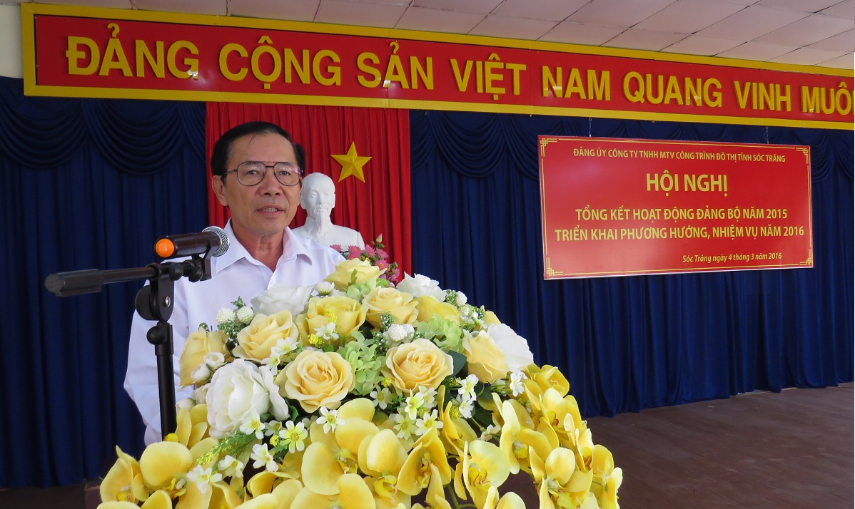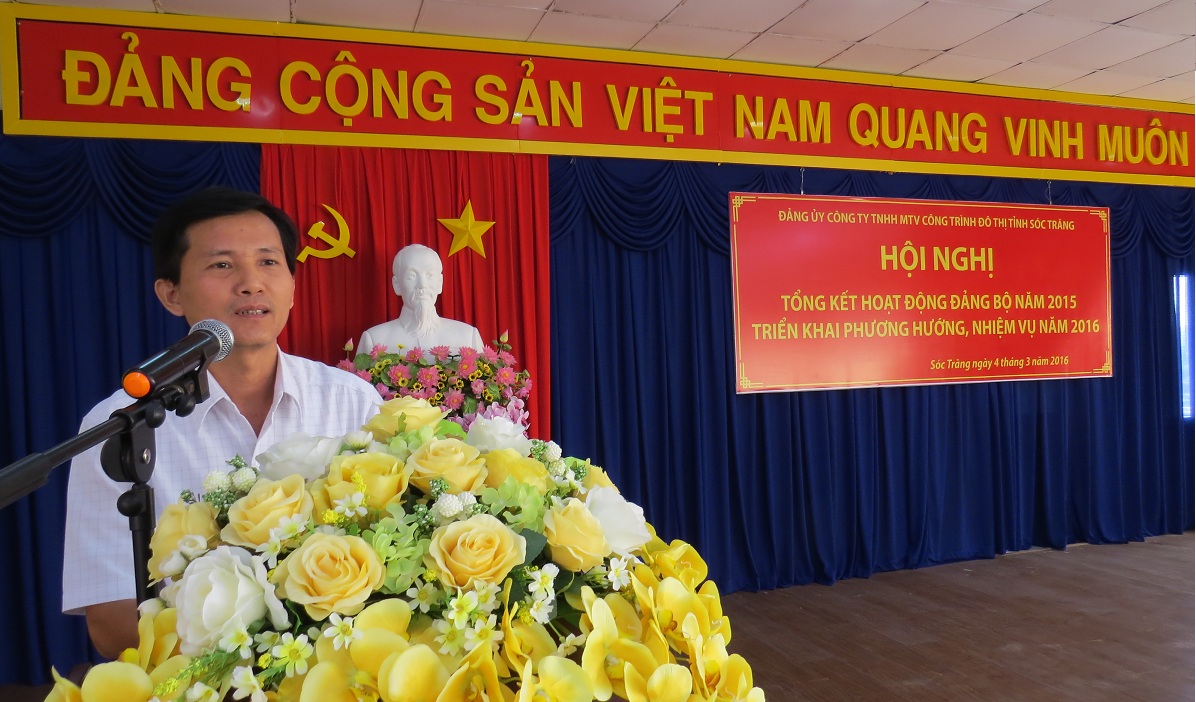 Sáng ngày 04/03/2016 Đảng bộ Công ty TNHH MTV Công trình Đô thị tỉnh Sóc Trăng tổ chức Hội nghị tổng kết hoạt động Đảng bộ năm 2015, đồng thời triển khai phương hướng nhiệm vụ năm 2016. Đến dự hội nghị có đồng chí Huỳnh Công Trí – Phó Bí thư Đảng ủy khối Doanh nghiệp tỉnh, đồng chí Vương Văn Việt – Bí thư Đảng ủy, Phó Tổng Giám đốc Công ty cùng toàn thể Đảng viên tham dự.
