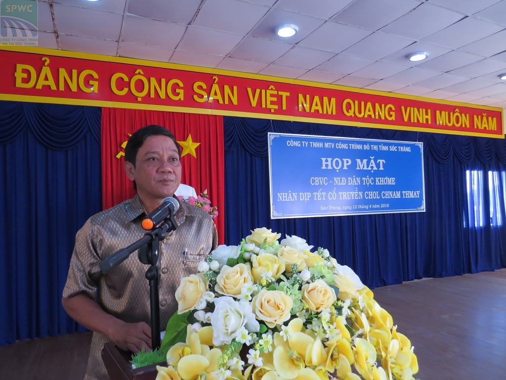 Tại buổi họp mặt, đại diện Tỉnh ủy, HĐND, UBND tỉnh ông Lý Sóc Kha, Phó Ban dân tộc tỉnh đã đọc thư chúc Tết gửi đến CNVC – NLĐ Khmer trong công ty. Là doanh nghiệp hoạt động công ích trên các lĩnh vực môi trường, thoát nước, chiếu sáng, cây xanh… với gần 500 CNVC – NLĐ, trong đó có 30% là người dân tộc Khmer, trong thời gian qua Công ty luôn quan tâm chăm lo đời sống vật chất tinh thần cho CNVC – NLĐ. Đặc biệt với người dân tộc Khmer luôn được Công ty quan tâm chú trọng.