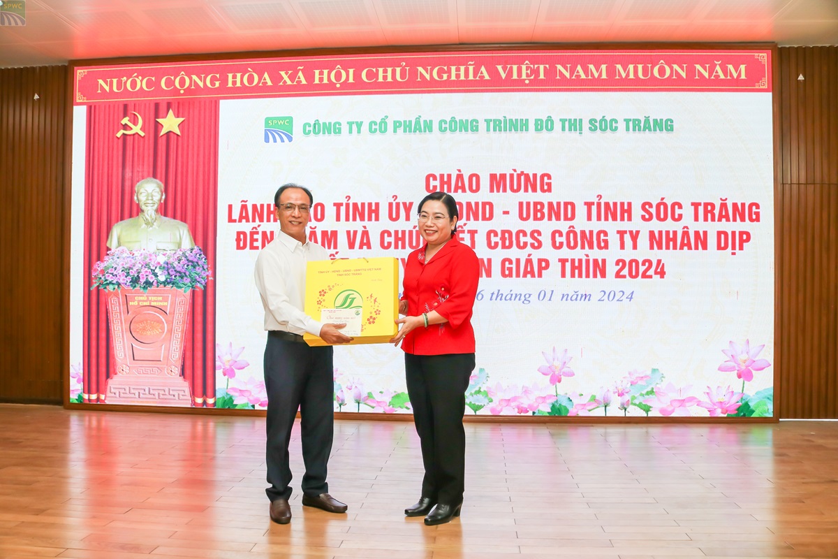 Nhân dịp Tết Nguyên đán Giáp Thìn, ngày 26/01/2024, Lãnh đạo Tỉnh ủy – HĐND – UBND tỉnh Sóc Trăng do đồng chí Hồ Thị Cẩm Đào - Phó Bí thư Thường trực Tỉnh ủy, Chủ tịch Hội đồng nhân dân tỉnh làm trưởng đoàn đã đến thăm, chúc tết CĐCS Công ty Cổ phần Công trình Đô thị Sóc Trăng.