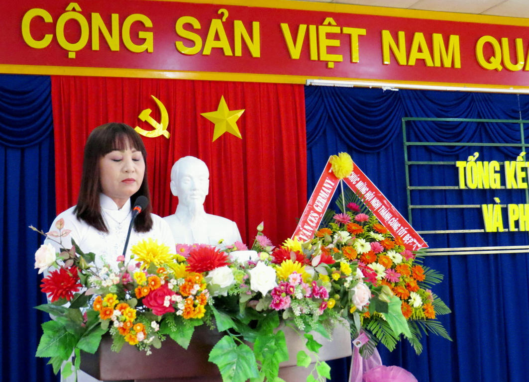 Tiếp sau, bà Đoàn Thị Bích Nga, Phó GĐ Công ty TNHH MTV Công Trình Đô Thị tỉnh Sóc Trăng lên tuyên bố lý do buổi lễ đồng thời giới thiệu đại biểu tham dự buổi lễ của Công ty.