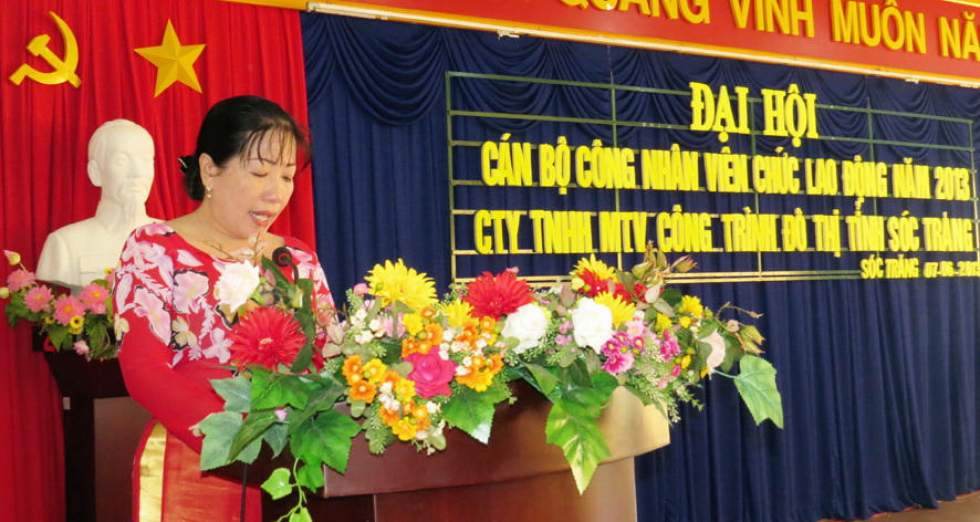 Ngày 07 tháng 06 năm 2013, tại hội trường công ty TNHH MTV Công Trình Đô Thị Sóc Trăng đã diễn ra Đại hội cán bộ công nhân viên chức lao động của Công ty năm 2013. Đến tham dự Đại hội có Ban giám đốc cùng các cán bộ, công nhân của công ty.
