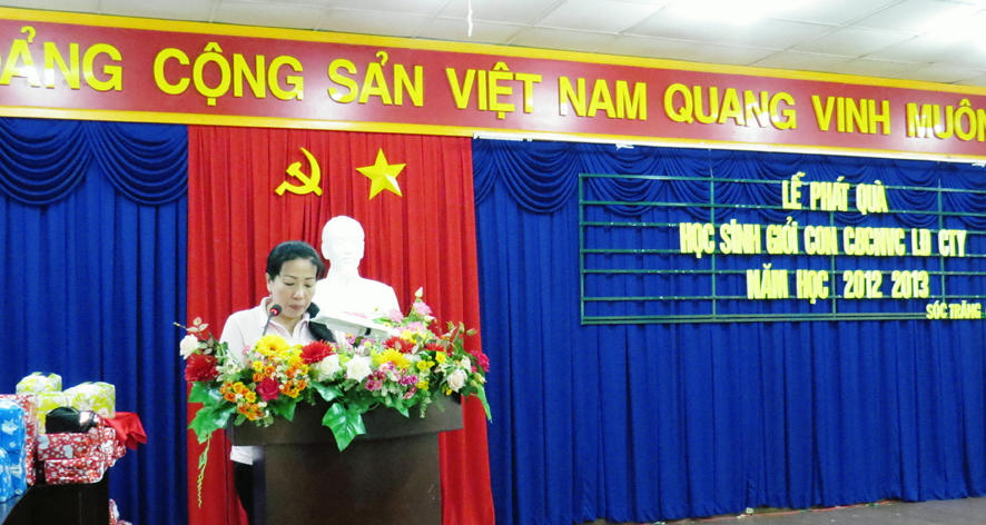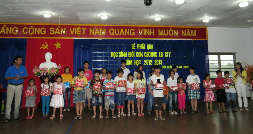 Ngày 09/8/2013, Công đoàn cơ sở Công ty TNHH MTV Công trình Đô thị Sóc Trăng đã tổ chức Lễ phát quà cho các cháu học sinh giỏi năm học 2012 – 2013 là con CBCNVC Công ty. Tham dự buổi lễ có các đồng chí Lãnh đạo Công đoàn Công ty, ban giám đốc và lãnh đạo các phòng ban, xí nghiệp Công ty.